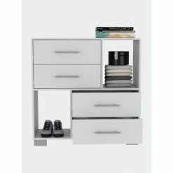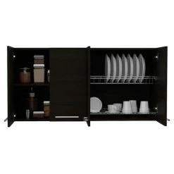 FM Furniture Sunflower Dresser, Four Drawers, Two Open Shelves Storage & Organization Black Wengue