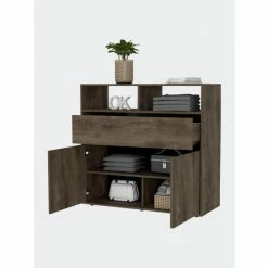 FM Furniture Everly Wall Cabinet, Glass Cabinet, Double Door, Rack Storage & Organization Light Pine