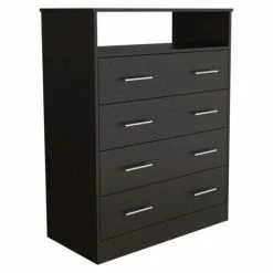 FM Furniture Lagos Four Drawer Dresser, One Shelf, Superior Top Storage & Organization Black Wengue