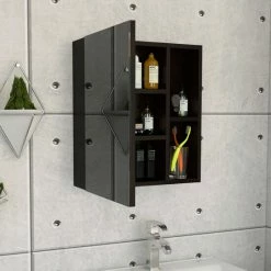 FM Furniture Kansas Linen Cabinet, Three Shelves, One Cabinet Storage & Organization Black Wengue