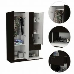 FM Furniture Habana Armoire, Two Cabinets, One Drawer, One Hidden Drawer Shoes Storage & Organization Black-white