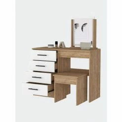 FM Furniture Tecoa Writing Desk, Four Shelves Coffee & Side Tables White – Pine