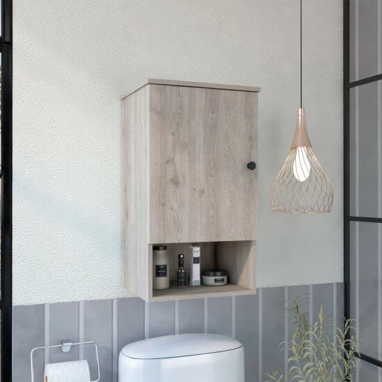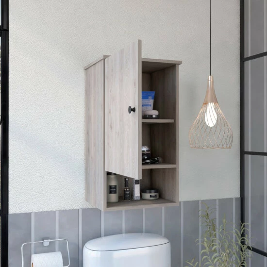 The Alaska Medicine Cabinet is the perfect storage solution for people who wants to keep their personal belongings organized and stylish. The sleek design of this cabinet will add a modern touch to any bathroom, and the spacious interior shelves provide plenty of room for storing all of your essentials, with easy access to one open frame Designed with elegant light, gray manufactured wood finish.