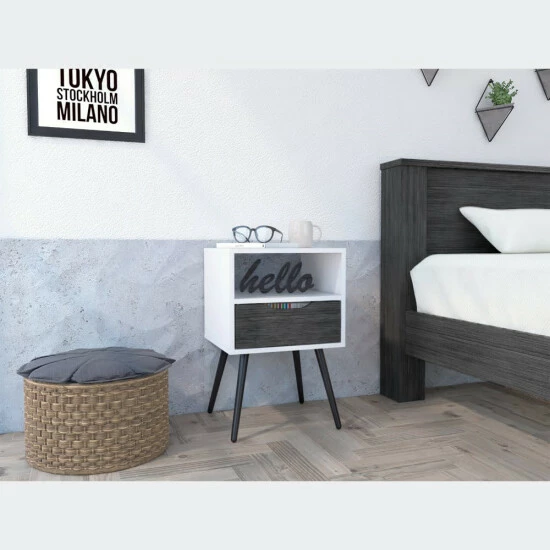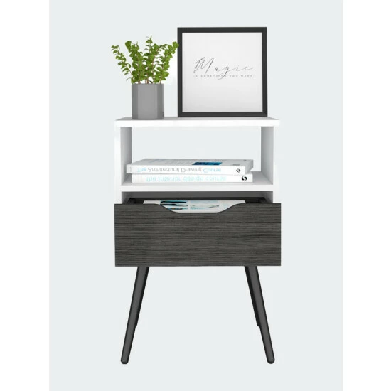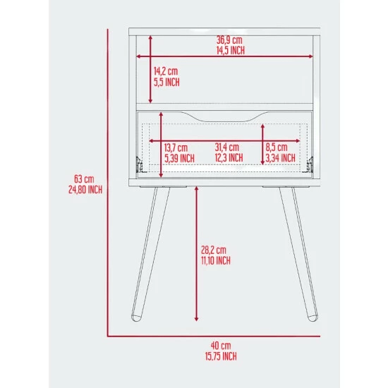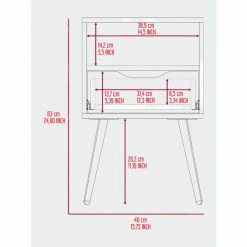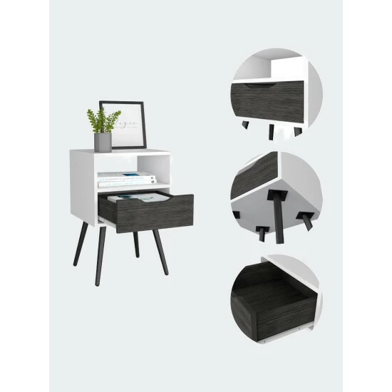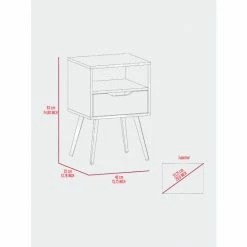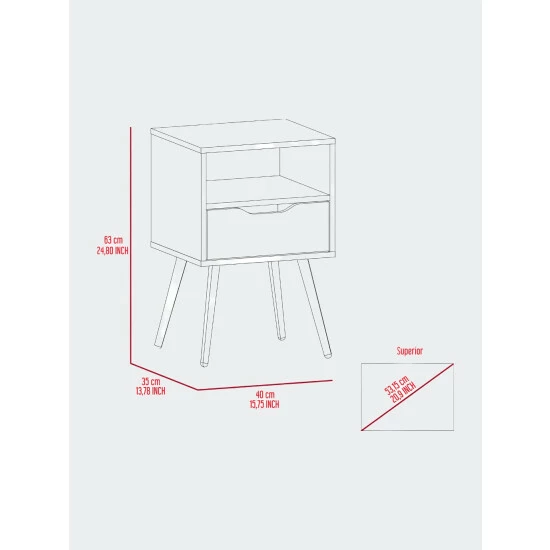 If you are one of those people who like to have their personal belongings organized and close at hand with easy access, the allie nightstand is ideal for you. This nightstand has a modern and contemporary style for its four legs, giving a unique touch to your room. You can use it in your room or in the place you prefer; it works perfectly in any space. With a perfect superior top (20.9”) to display your favorite decorations or your books, it also has an ideal shelf for smaller objects, as well as a perfect drawer for your most precious things and one open shelf (5.5”h x 14.5”w).Designed with elegant white-light oak manufactured wood finish.