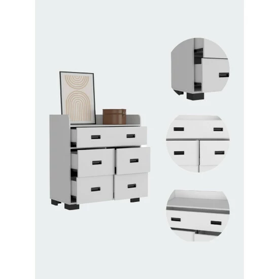 Anemone Dresser, we created this excellent piece of furniture with a unique idea to create a beautiful design and combine it with practicality and functionality. The result is a lovely dresser with one double drawer and four spacious drawers. Details such as black handles ad all-metal hardware will make this piece stand out in your bedroom.