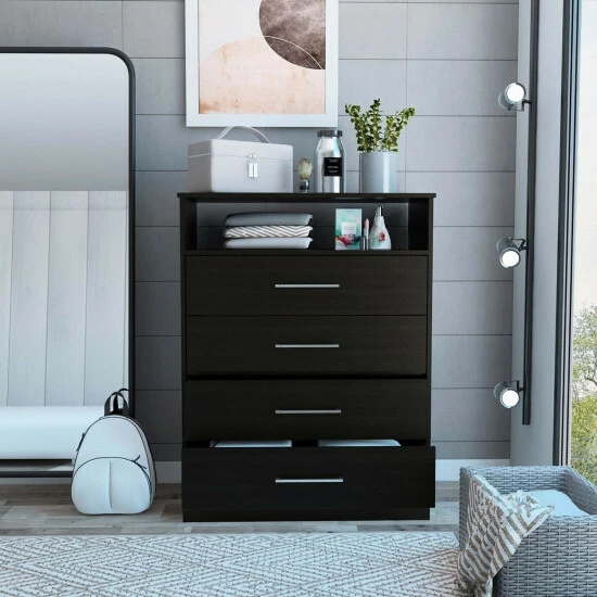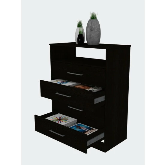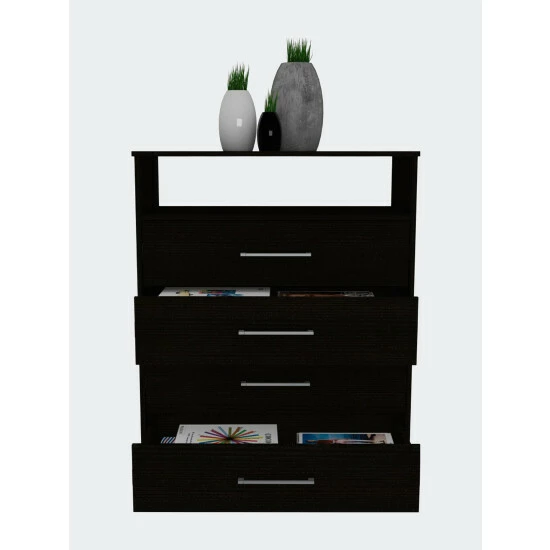 Athens Dresser, Are you looking for a dresser that meets your primary needs in the order within your room, living room, and kitchen? The Athens Dresser is here to stay, thanks to its beautiful design, created to keep order, this beautiful product offers you four closed drawers of a perfect size to store your jeans, shirts, sweaters, socks, and underwear, thanks to its beautiful design and its open shelf, not only serves to keep clothes, but you can also decorate it, put plants, photographs, consoles and other accessories, giving a touch of elegance inside your bedroom or place where you want to accommodate it.The Athens four-drawer dresser is designed to be a stand-out piece in your bedroom. A very modern yet classic design will offer you great features to complement and combine any other furniture you have in your bedroom.
