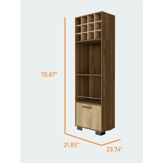 Aubree Corner Bar Cabinet, do you have a favourite corner? Chances are, it would look even better with this Aubree Corner Bar Cabinet! Not on the Cabinet offers excellent storage capacity with a cup rack, two shelves (20″H x 16,5″H x 20,5″W) and one ample flexible drawer, as well as twelve wine cubbies (4,4″) making it perfect for any wine lover. Fits perfect in any corner. Designed with elegant mahogany-macadamia manufactured wood finish.