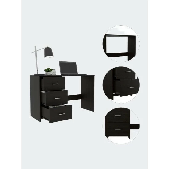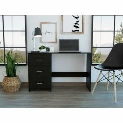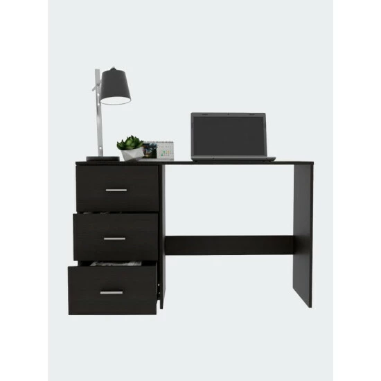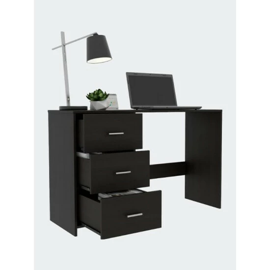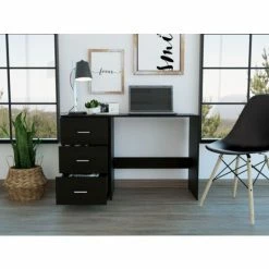 Berlin Three Drawers Desk, Suppose you are looking for an office or home desk that fits in any space that is light, lightweight, and ergonomic. In that case, this is the perfect desk for you, a beautiful flat design that allows you to accommodate any essential accessory for work and study. It has three removable Drawers that allow for storing objects, books, notebooks, and stationery. It has a wide and comfortable surface for you to put essential daily use items, has perfect space to accommodate your legs, and works quietly and comfortably. So do not wait any longer. This is the desk you are looking for. Run now and get it. Classic, elegance, and functionality is the best way to describe a FM Berlin 3 Drawer computer desk; a timeless product will provide you a great, ready to go and very professional space to study or work from home. Its top surface of 47.5″ wide and 16.5″ deep will allow you to have in laptops and monitors plus a good amount of space for keyboards and a mouse. Featuring a classic finish and three spacious Drawers (6.3″ H x 15.6″ W) that will help you keep your files and documents in order. Designed with elegant Black Wengue manufactured wood.