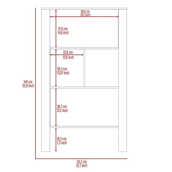 - Dimensions: 55.1″ H x 32.7″ W x 11.4″ D