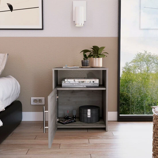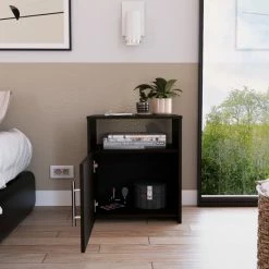 Bristol Nightstand, unique, memorable, simple, and minimalist designs are the beautiful words that describe this beautiful Night Stand. That despite its small size, your cabin has perfect space to store books, files, or any accessory you want to keep and have well cared for because thanks to its cabin door, this piece of furniture will hold everything you want and protect it in the best way so you can feel at ease from losing or damaging the files you store. This small Night Stand also has a small shelf where you can store items you need in everyday life, and thanks to its resistant surface, it allows you to place photos, plants, or other accessories to decorate. Please take advantage of this beautiful Night Stand and get it NOW! Designed with elegant black manufactured wood.