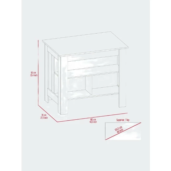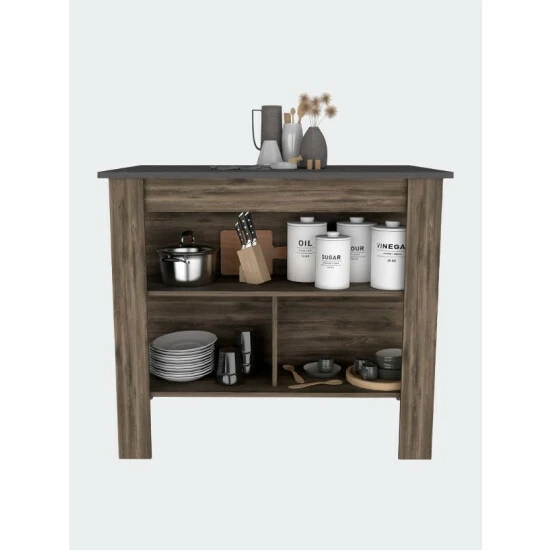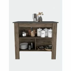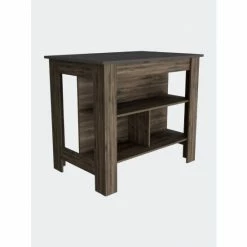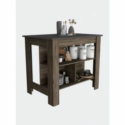 The Brooklyn Kitchen Island, this unique kitchen island brings life to the interior of your kitchen thanks to its modern ergonomic design; it also has colors that give glamour, luxury, and elegance to the interior of your kitchen; this kitchen island is an excellent choice for medium and large kitchens that want to give life and unique designs, it is an efficient piece of furniture that does not occupy great space inside your kitchen. It is made of wood with a beautiful color combination between the base and the top. It will enhance your kitchen space by giving you a spacious top surface (27-inch deep x 40.5 inches wide) with scratch-resistant melamine.Below the top, you will find a great space to store your stools on one side and a convenient shelves space on the other, with one wide shelf at the top and two smaller frames at the bottom. This shelving space is a practical place to store your pans, pots, or even decor looks fantastic on this kitchen island.