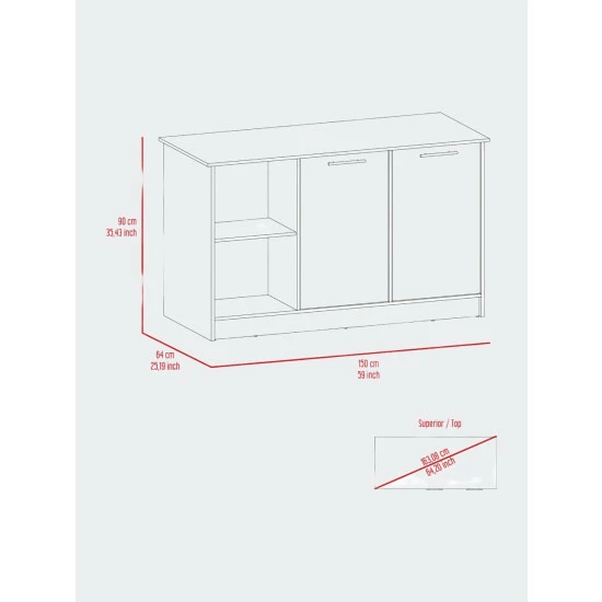 - Dimensions: 35.43″ H x 59″ W x 25.19″ D