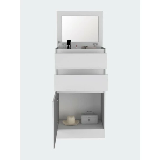 The Celestial Dresser is creative, functional and one-of-a-kind. This unique item will become your favorite. Thanks to its moveable shelf with a mirror and jewelry drawing, it’s fantastic for storing your favorite items in its two drawers (7”H x 23.3”W) and using it as a cosmetic station. It’s unlike anything else you’ve ever seen.
