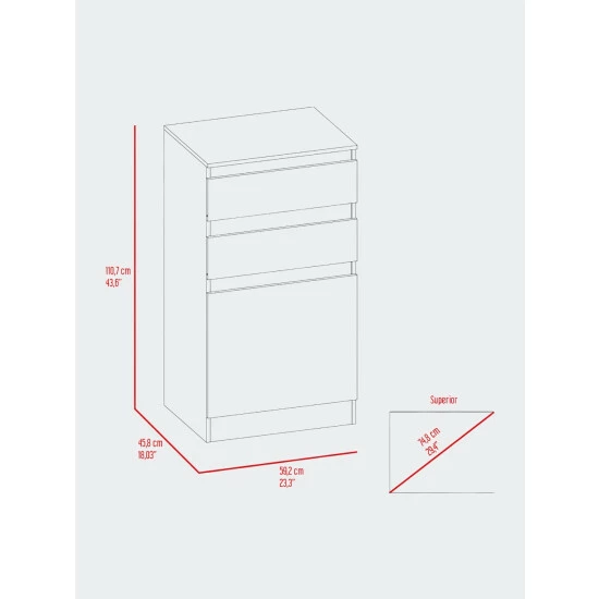 - Dimensions: 43.6″H x 23.3″W x 18.3″D