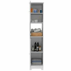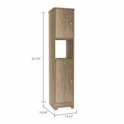 The Charlotte Linen Cabinet keeps your bathroom essentials looking tremendous and close by in this Vanguard Linen Cabinet, with its exclusive design. It features a 68″ High storage cabinet, featuring two cabinets, four concealed internal shelves, and one open shelf for decor. Designed with elegant Light Oak, White manufactured Wood finish.