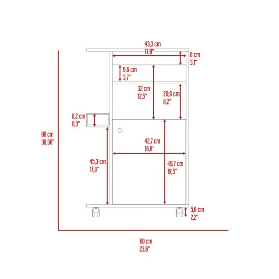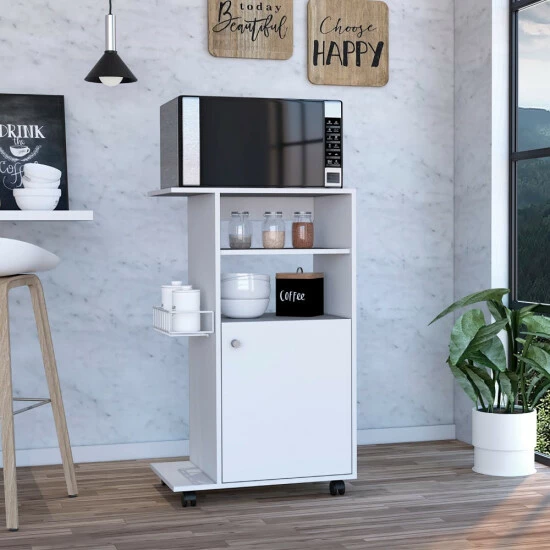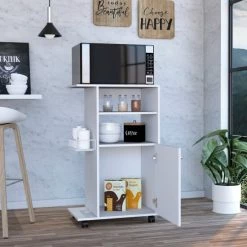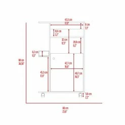 Columba Kitchen Cart, the idea of adding extra storage to your kitchen, becomes a reality with this ergonomic cart. The countertop (23.6″ W x 14.9″ D) design is specifically for the microwave and can be moved about as needed owing to the four caster wheels (2.2″). It is both stylish and functional, with a large storage capacity anoraks for extra storage (0.3″) With a perfect size. Designed with elegant black wengue and white manufactured wood finish.