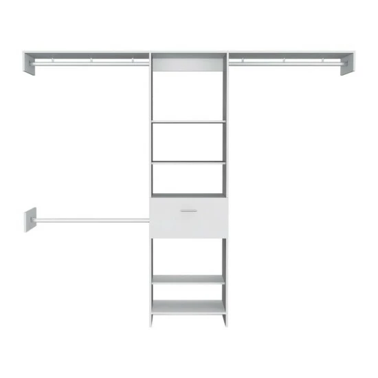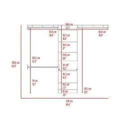 Cross Closet System, this frequently want additional storage space in a rooms but cannot do so due to a lack of available space, and here’s the perfect different and unique closet.If you’re passionate about the different designs, this closet adjusts to every space, and it will be your new favorite ornament and decoration. There are five shelf applications, one drawer (10.2″ H x 22.3″ W), and three metal rods (36.8″) to keep your clothes organized. The ideal top size is the suspect size (99.7″). Designed with elegant dark walnut, black wengue, and white manufactured wood finish.