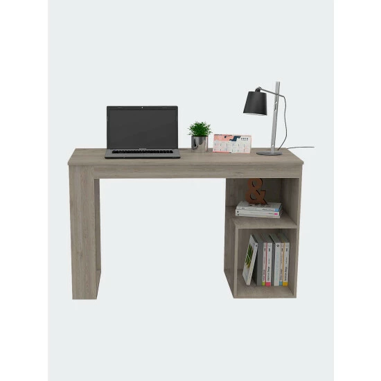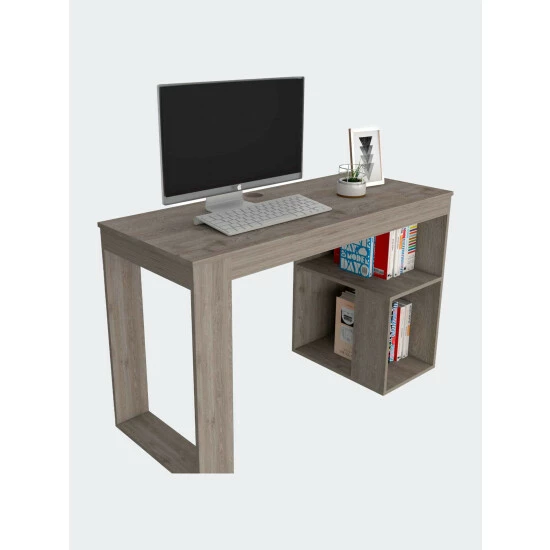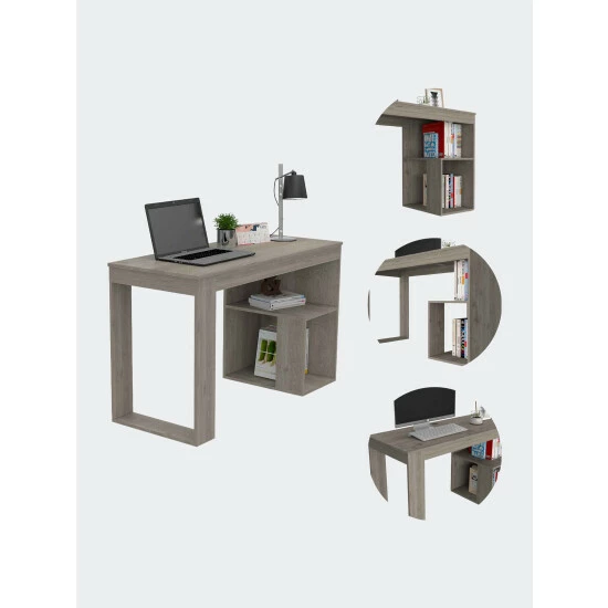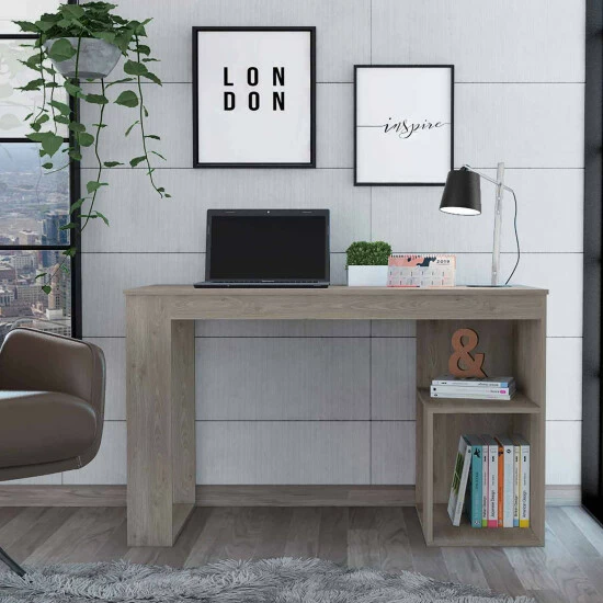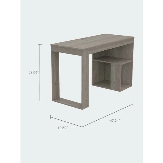 The Crossett desk is an ample desk with an open layout, providing multiple shelves for quick storage or décor. The contemporary and modern design allows for a clean working space, whether you have a laptop or a desktop computer, and still providing a comfortable working area. This beautiful desk has a particular design, which gives a touch of originality, is simple, easy to accommodate, practical and light, an excellent desk to accommodate in small spaces. Designed with elegant light gray manufactured wood.
