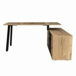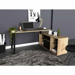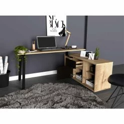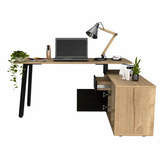 The Cusco 150 L-Shaped Computer Desk maximally utilizes the space suitable to any home office, whether big or small, very stylish, convenient, and space-saving! If you are a tall person, work comfortably with enough space to place your legs under the desk without any issue, 28″ clearance of legroom. The first thing that will catch your eye is the combination of metal and particleboard. The long metal legs are a nice design touch, the metal connector to form the L shape and a small set of metal legs for the corner piece will provide a firm and sturdy structure. A spacious tabletop (59″ W x 23.6″ D) will provide you with plenty of room to comfortably do your task. It can accommodate a big screen monitor, laptops, keyboards, and you will also have space for a mouse, notebooks, and on the secondary tabletop, you have room for decorations or even more work stuff. This desk is a perfectly straightforward design to maximize the corner space in your room. Functional and with a lot of storage space, the return will provide you a place to put all your items. In addition, a drawer and a cabinet will complement this desk to give the whole package to place your files, folders. Designed with elegant light oak-black manufactured wood.