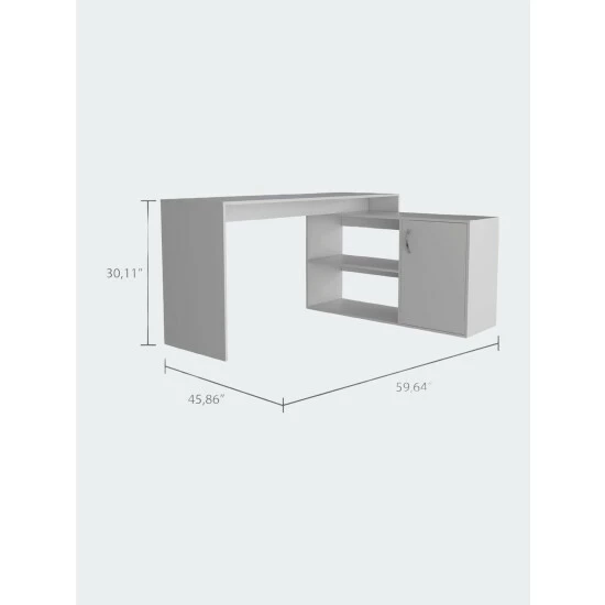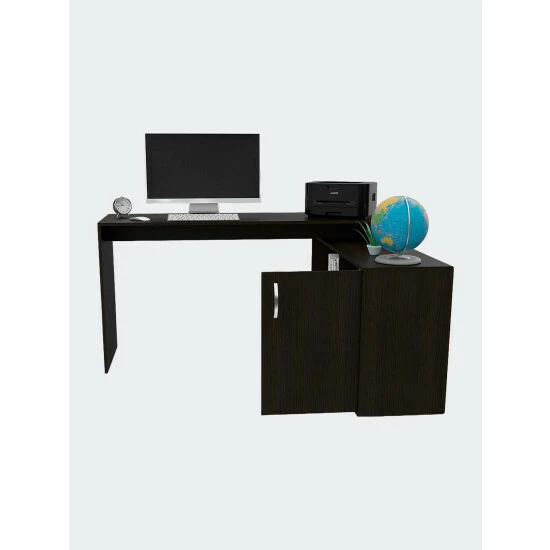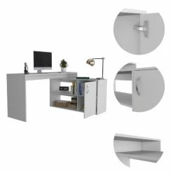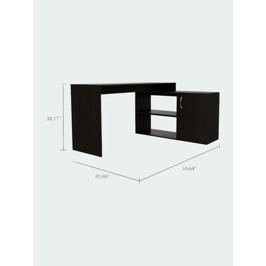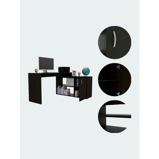 Dallas L-Shaped Home Office Desk. This L-shaped office desk features ample storage and storage of accessories, a hefty load capacity, and a thick panel that makes the desk sturdy. It has easy access for your legs to store all your files, documents, laptop, consoles; plus underneath the desk, you will find plenty of space to keep your legs relaxed and place your CPU or other supplies. Thanks to its large drawer, you can store essential files without leaving them exposed to damage. It also has two open shelves so you can store books or files you need at hand. This desk is characterized by ample space and structure easy to accommodate in any place, office, or home. This L-Shaped Home Office Desk is a polished, practical instrument for your home office, optimizing space due to its corner-friendly design. The main desk offers more than enough space for you to do your daily due diligence, while the perpendicular desk offers extra top surface space, two open shelves, and a spacious storage cabinet. Designed with elegant black wengue, light oak, smokey oak and white manufactured wood.