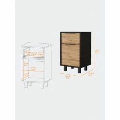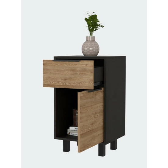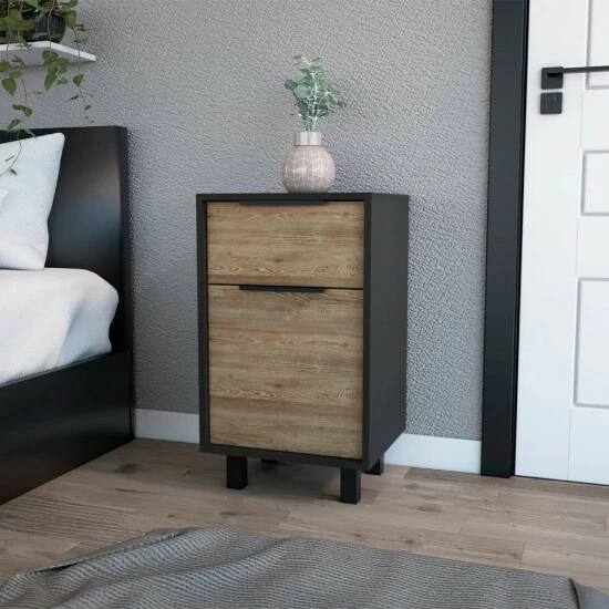 The Dhaka Nightstand is a beautifully designed and functional piece of furniture perfect for any bedroom. The nightstand comes in a variety of colors and includes one ample drawer (16.2″ W x 14.3″ D x 27.5″ H) one cabinet (14.9″ W x 14.5″ H) for extra storage, four stylish legs, and a perfect Superior Top (16.2″ W x 14.3″ D) to expose your favorite decor. Designed with elegant black wengué-pine, white-pine, and smokey oak-white manufactured wood finish.