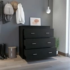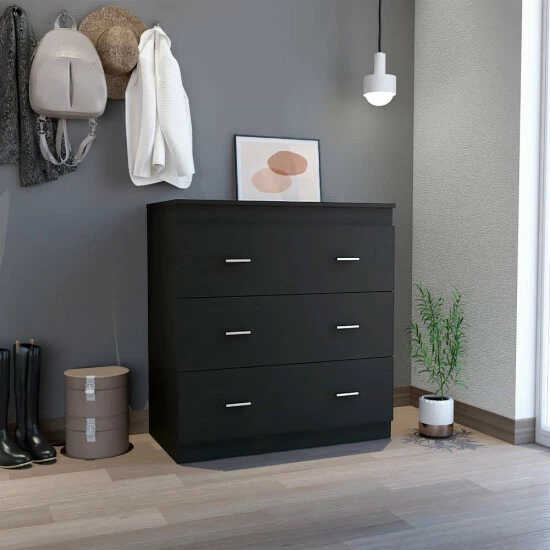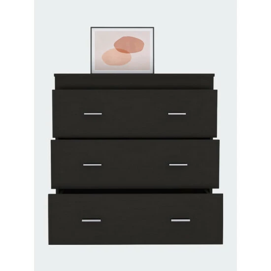 Dove Three Drawer Dresser, this piece is part of a new and limited-edition classic series. It is a beautiful extra storage space for your clothing, books, or anything you choose, with a modern touch with its metal hardware and spacious three-drawer design (27.95″W x 23.2″H) moreover, its Superior Top (35,5″) is perfect for customizing it in your way with your favourite decorations. Designed with elegant black wengue, light gray, and white manufactured wood finish.