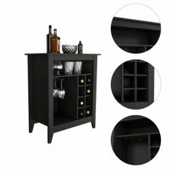 Future Bar Cabinet, if you’re a true wine connoisseur who needs plenty of storage for your bottles, The Future Bar Cabinet’s ample storage for your home bar is the perfect blend of elegance and comfort; this bar has eight cubbies (4.8″ H x 4.4″ W) for your favorite wine, plenty of storage space for your glasses, and an Interior shelf, in addition to its ideal countertop (37.12″) for decoration. Complete your home bar collection! Designed with elegant black wengue, light gray, and carbon espresso manufactured wood finish.