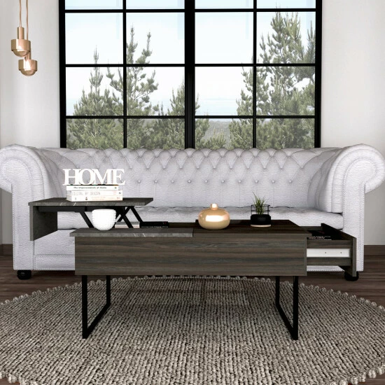 The Georgetown Lift Top Coffee Table was created for the comfort of your home. Create modern and innovative spaces with this beautiful piece of furniture, especially to receive your visitors and impress them with this spectacular design. It features a lift-top with concealed storage, a spacious top surface (40.94″ W x 25″ D), and four reinforced metallic legs. Designed with elegant carbon espresso / onyx manufactured Wood finish.