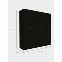 Guajira six door armoire, Do you need a place to store your clothes and your staff? Say no more; The guajira six-door armoire is what you are looking for. This furniture has eight spots to organize your room perfectly. You will have two cabinets each one with an interior hanging rod, besides three spots in the middle to store different items , at the bottom, you will find a folder door and a one easy to access sliding drawer. It never was that easy to organize and have everything at just one look, and this is the missing part in your room. Designed with elegant black wenge- white manufactured wood finish.