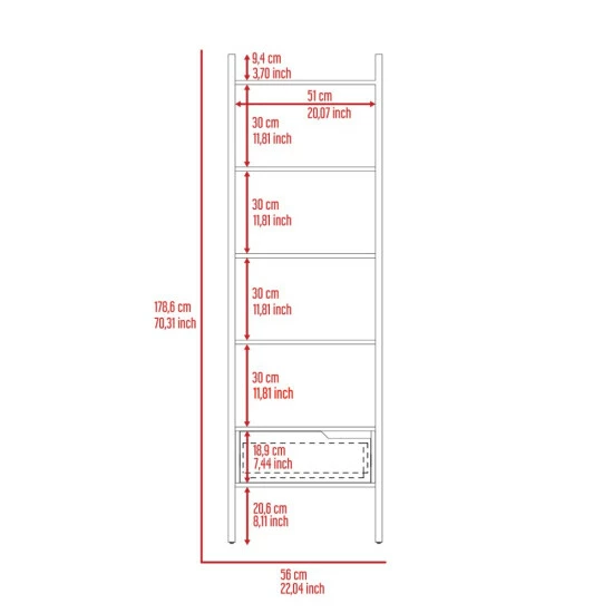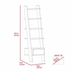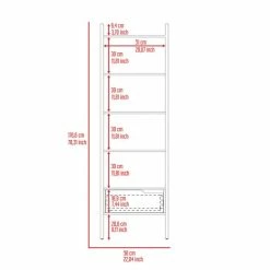 The Hamburg Ladder Bookcase is perfect for those who want to make a statement with their style. This unique bookcase features five open shelves (11.81″ H x 20.07″ W) and one drawer (7.44″ H x 20.07″ W) providing ample space to store and display your favorite items. The superior-top size (26.86″) ensures that this bookcase will stand out in any room. With its elegant design, the Hamburg Ladder Bookcase will become a staple in your home décor. Designed with elegant dark walnut manufactured wood finish.