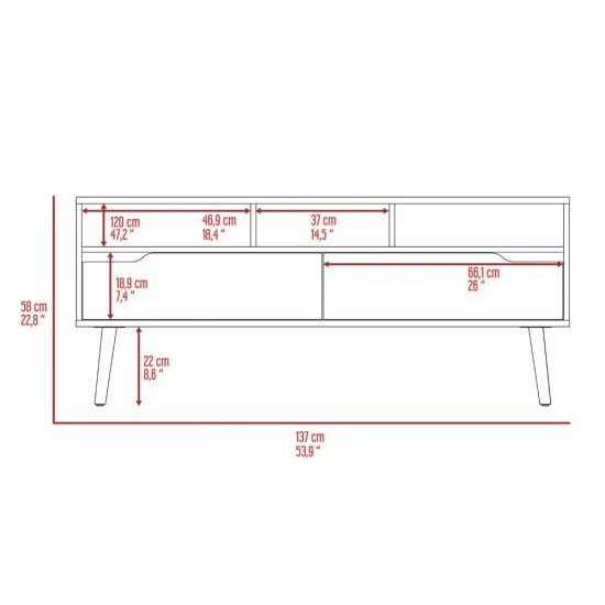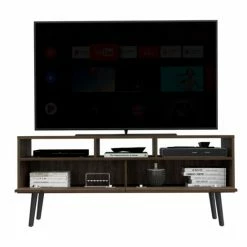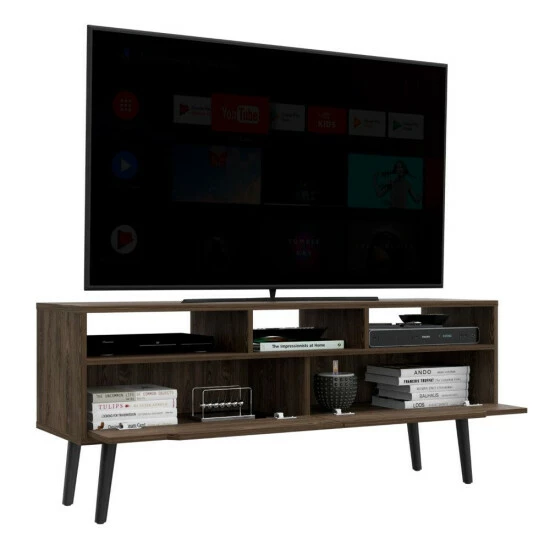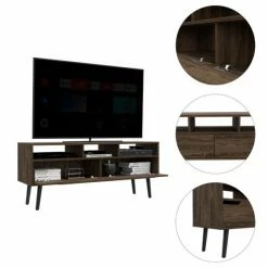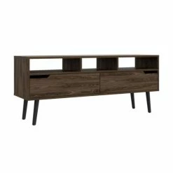 Hamburg TV Stand, If a standard TV stand won’t do, the Hamburg Tv Stand is a perfect choice if you’re looking for something with both form and function. Its sleek design will complement any room and its ample storage space ensures that you’ll have everything you need at your fingertips. Includes an ample superior top(56”) with a great TV capacity (60”) three open shelves and two-door flexible cabinet wih two interior shelves (66.1”W x 18.9”H) and the final contemporary touch with its four legs (8.6”).