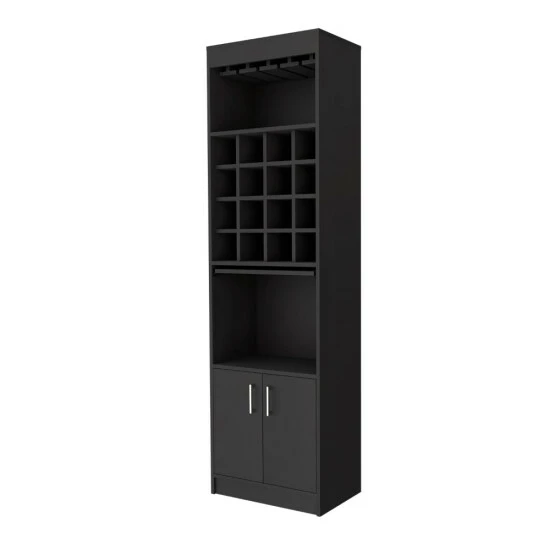 Kabul Kava Bar Cabinet, who doesn’t love a good home bar? If you’re looking for the perfect combination of classic and contemporary style, the Kabul Kava Bar Cabinet is the perfect solution. This great piece of furniture comes complete with a glass rack for your glasses, one for your cocktails, and plenty of storage space for your wines with 16 wine cubbies (4.4″ H x 4.4″ W) two open shelves (18.8″ W x 15.7″ H), and two-door cabinets. So, whether you’re entertaining guests or just enjoying a night in, the Kabul Kava Bar Cabinet is the perfect addition to your home. Designed with elegant black wengué and light pine manufactured wood finish.