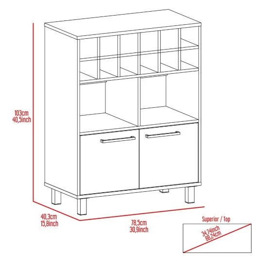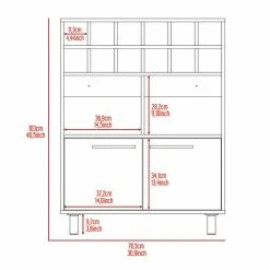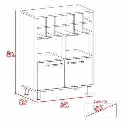 Upgrade your home bar with the chic Kaia Bar Cabinet. This stylish piece is crafted from light pine and white manufactured wood and features twelve wine cubbies (4,44”W X 4,44”H), two cabinets (14,6”W X 13,4”H) and two compartments (14,5”W X 11,10”H) for ample storage. The metal handles and four legs add a touch of elegance while the mixer shelf lets you mix up your favorite drinks with ease. Whether you’re hosting a party or relaxing at home, the Kaia Bar Cabinet will make a statement.