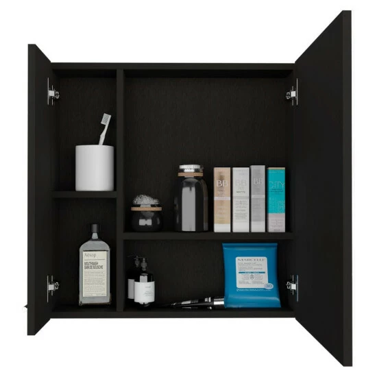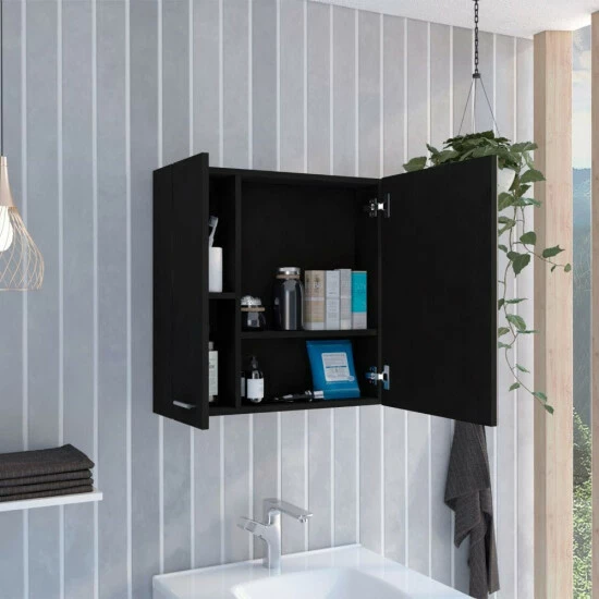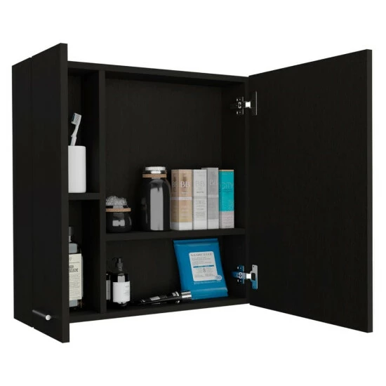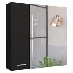 Kenya Medicine Cabinet, this unique and elegant medicine cabinet is the perfect solution for your bathroom! With its contemporary design, it will add a touch of elegance to your bathroom while also providing you with extra storage space. You can use it on any wall, even in the smallest bathroom, of its ergonomic size. Includes an ample mirror cabinet with single door, four interior spacious shelves (11.12″ H x 10.5″ H x 15.1″ H x 66″ H x 5.9″ W x 40.2″ W) with variety of colors. Designed with elegant black wengue, light gray, and white manufactured wood finish.