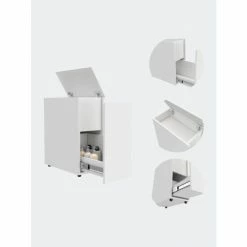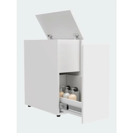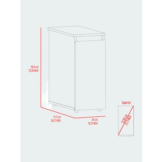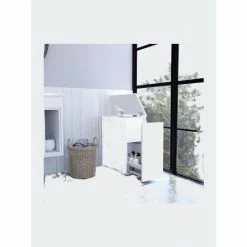The Leicester Bathroom Storage Cabinet is the perfect fit for any size bathroom space. It features a tall cabinet with a high storage-space capacity (24″ H x 1″ W x 1″ D), perfect for covering your storage needs in a garage, utility room, living room or kitchen, one internal shelve, the top one is a bit shorter than the rest, easy to assembly, no power tools required. Designed with elegant white manufactured wood finish.