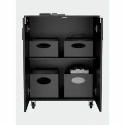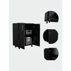 Lewis Storage Cabinet Base is a stylish and durable garage storage solution. Perfect for storing anything from tools to holiday decorations, this cabinet is made with durable black manufactured wood and features an easy-to-use locking mechanism, a two-door cabinet, and three internal shelves. With its unique design, the Lewis Storage Cabinet Base is sure to complement any garage decor with its countertop (27.56″ W x 15.98″ D) Designed with an elegant Black Wengue manufactured wood finish.