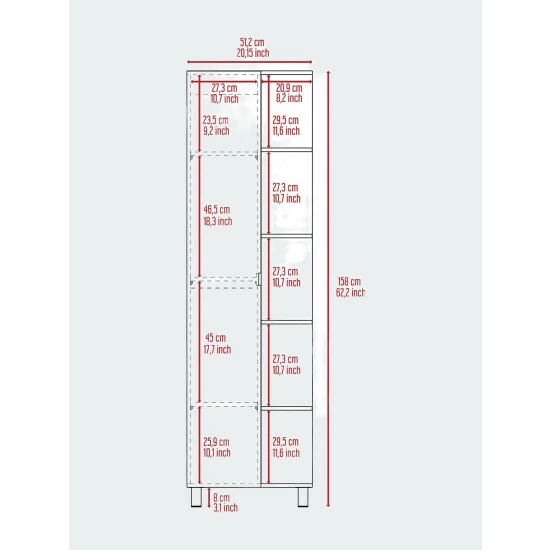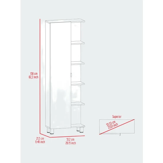 - Dimensions: Height: 62″ x Width: 20.1″ x Depth: 8.5″