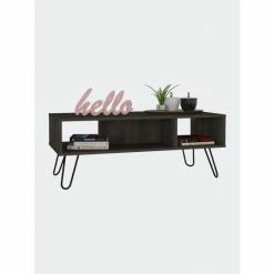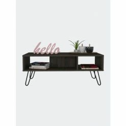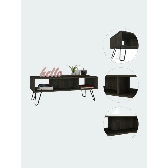 The Minnesota Charcoal Coffee Table this sophisticated, modern-looking coffee table is a must-have item for your home. With plenty of open compartments to store and exhibit your living room items, this product proves to be not just polished and stylish but also highly functional. It features an extensive top surface (39″ W x 17″ D), an open shelf divided by a “double-L” separator, and four reinforced metallic legs. Designed with elegant White manufactured wood finish.