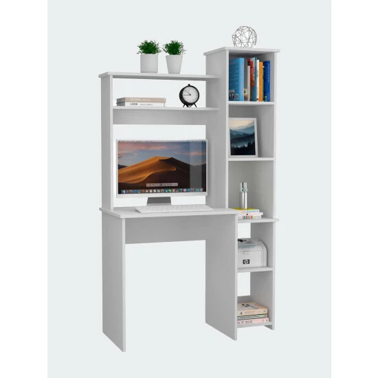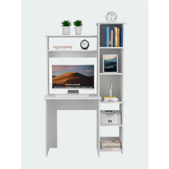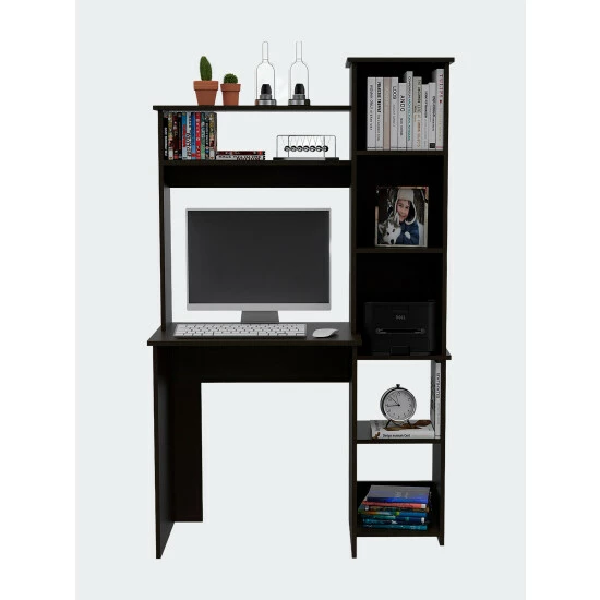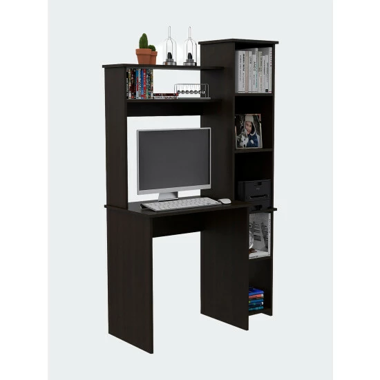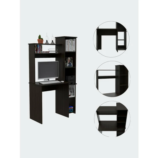 Nashville Desk, a ton of features will catch your eye and cover your needs for distance learning, working from home, or for your entertainment, such as: The top of the desk is 24.8″ W x 17.8″ D, spacious to fit a monitor screen, write or use your laptop comfortably. The hutch features a shelf. On the right side, a bookshelf is a perfect combination to add practicality to your desk. Designed with elegant light gray, smokey oak, white, black wengue, light oak and dark brown manufactured wood finish.