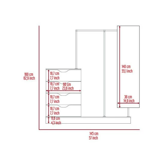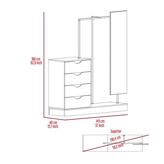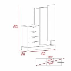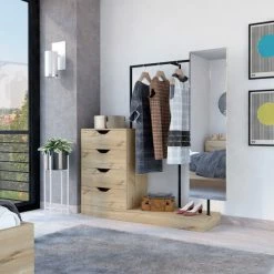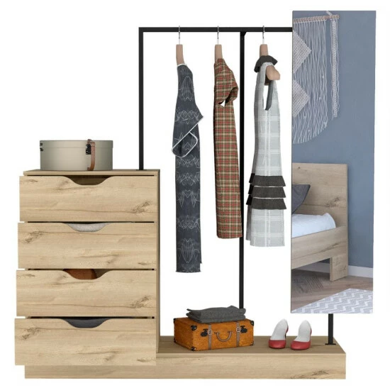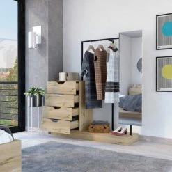 Odessa Connect Four Drawer Closet, if you’re looking for an excellent and modern way to add some extra storage space to your room, look no further than the Odessa Connect 4 Drawer Closet. This unique design comes with a mirror (14.9″ W x 55.1″ H), Plus, the four drawers (7.7″ H x 23.6″ W) are perfect for storing clothes, accessories, or any other small items. So why not add a touch of elegance to your life with the Odessa Connect 4 Drawer Closet? Designed with elegant light oak manufactured wood finish.