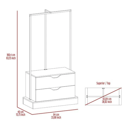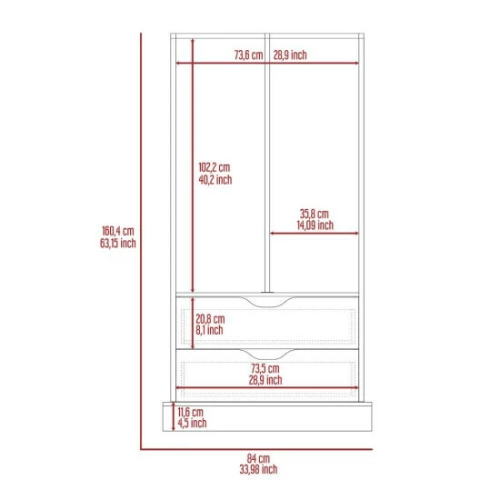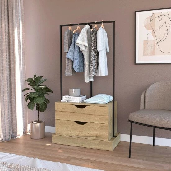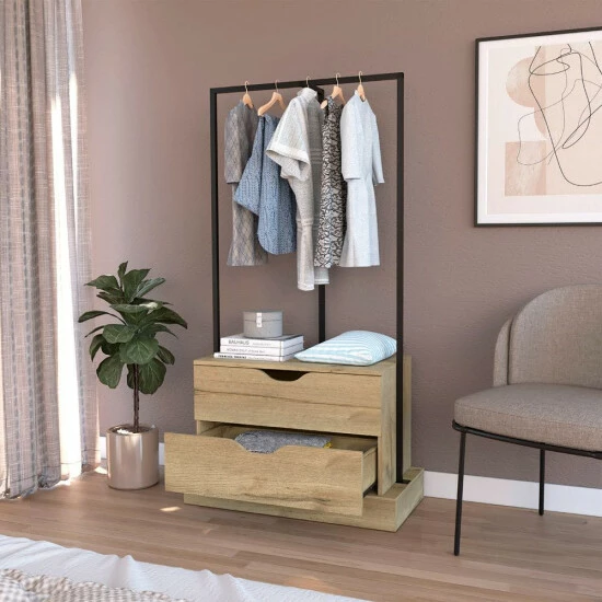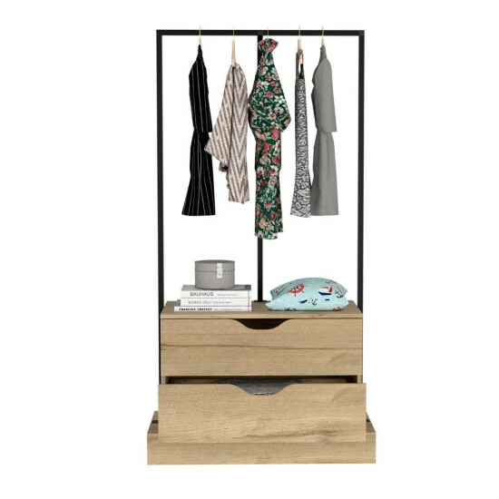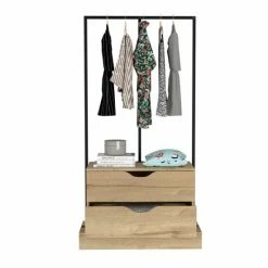 Odessa Connect 2 Drawer Closet is the perfect way to add extra storage to your room while adding a modern and innovative touch. With two spacious drawers (8.1″H x 28.9″W) and ideal metal rods to hang your clothes. This closet is perfect for storing clothes, accessories, or anything else you need. The sleek design makes it the ideal addition to any room. Designed with elegant light oak manufactured wood finish.