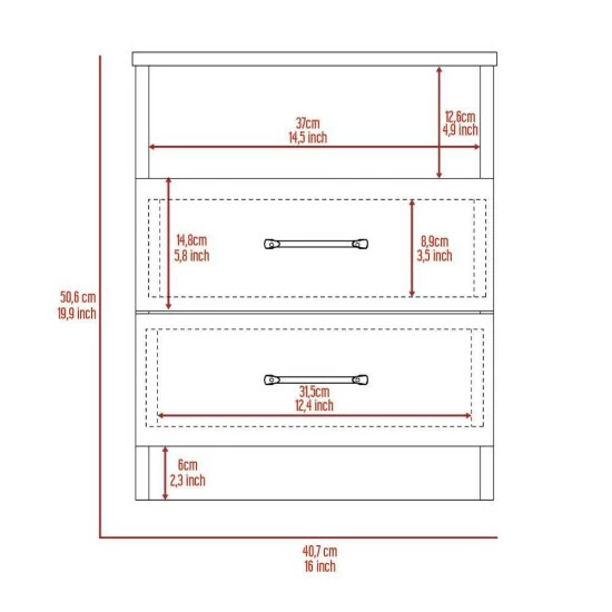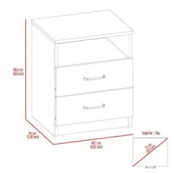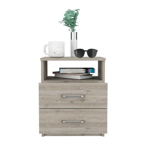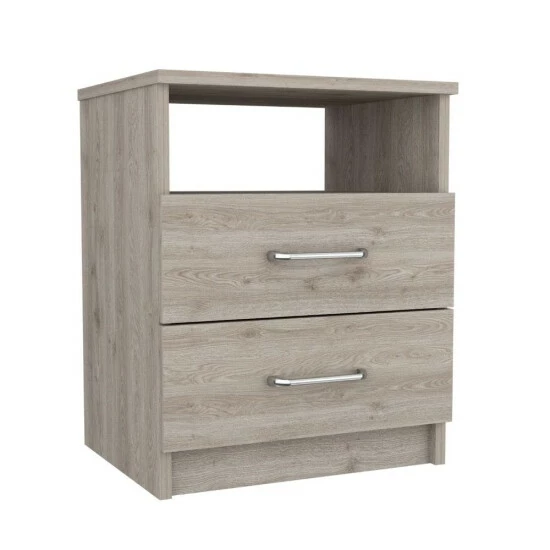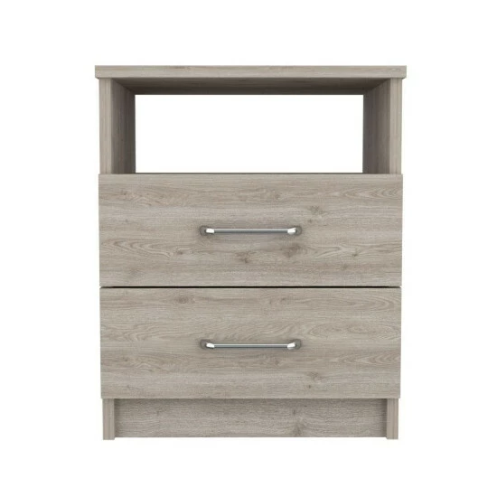 Oklahoma nightstand is a great addition to your bedroom. Standing at 19.9″ H and with a top surface of 16″ W x 12.9″ D great for placing your books, phone, or decorative items, it will provide you functionality at its best in your bedroom. A shelf below and two drawers are great options for that extra storage space you want next to your bed. All-metal railings and pulls are the perfect complements to make it a lasting product for you. Designed with elegant light grey manufactured wood finish.