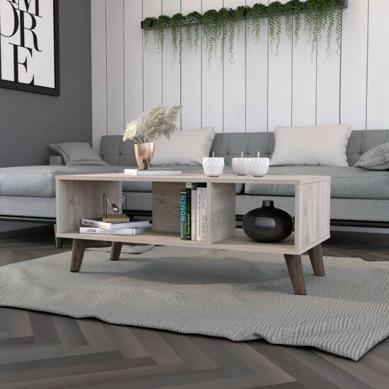 Oregon Coffee Table, end your search for the perfect coffee table – the Oregon Coffee Table has arrived! It features four legs and ample countertop space (39.8″ W X 18.5″ D), as well as two shelves for extra storage. Whether you’re looking to complete your living room collection or add a touch of style to your space, the Oregon Coffee Table is the perfect solution. Don’t wait any longer – order yours today! Designed with elegant light gray manufactured wood finish.