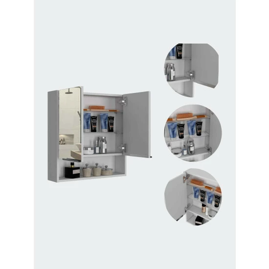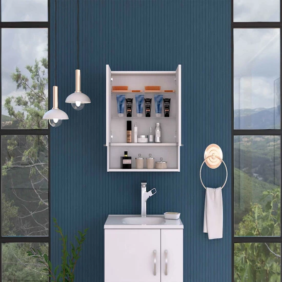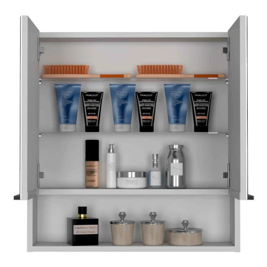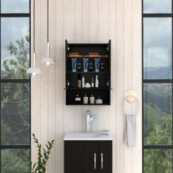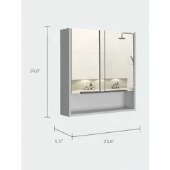The Ozark 24″ Medicine Cabinet with Mirror is an elegant, modern, functional and utterly simple mirror perfect for your bathroom. It features a 23.4″ width x 24.6 ” depth mirrored cabinet, wide-open shelf for easy access to frequently used items, perfect for different size bathrooms, two-door mirror cabinet. Designed with elegant Black Wengue, Light Oak and White manufactured Wood finish.