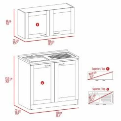 Perseus Cabinet Set, if you want an ideal kitchen, it requires the incorporation of a Cabinet Set, and have the proper one for you. This Perseus Cabinet set features plenty of storage and plenty of storage for the whole of your kitchen necessities, with a double set for superior and lower cabinets. This set comes with two interior shelves for organizing your utensils and two-door cabinets for a unique look. Its dimensions are (30.8″ H x 39.3″ W x 20.4″ D) and (19.2″ H x 39.3″ W x 12.6″ D), the superior-top (41.2″) the low top (44.3″) Designed with elegant black wengue, light gray and white manufactured wood finish.