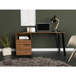 Petra Desk, this computer desk is the perfect combination of functionality, durability, and design in a sleek form. This desk will add a modern and sophisticated touch to any office or home that will meet today’s distance learning or work from home needs, with a height of 28.8 inches. Functional and compact, it features a spacious drawer to store all your items and keep them at hand, also a one-door cabinet with a modern handle and an open shelf. Designed with elegant mahagony manufactured wood finish.