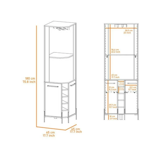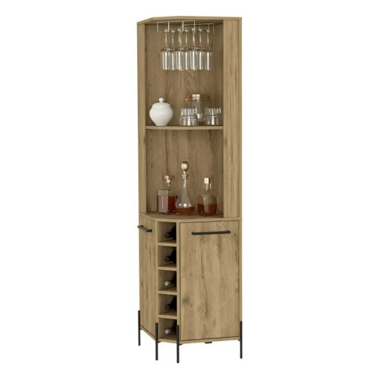 The Reese Corner Bar Cabinet is the perfect way to show your unique style while storing your favorite wine and drinks. With plenty of space to keep glasses for its ample cup rack and its five wine cubbies (4.4”) for wine, this cabinet is a must-have for any home bar. Includes two shelves (22.2”H X 17.7”H X 23”W) perfect to show your exclusive liquor or create new cocktails!