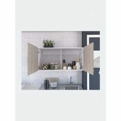 Rocco Wall Cabinet, wall cabinets are a great way to finish your area if you need some extra storage in your kitchen. It contains a two-door cabinet and one shelf (19.3″) with plenty of storage space to keep your food fresh and well-organized. The superior-top size (41.3″) makes it excellent for any room. Designed with elegant white-light gray manufactured wood finish.