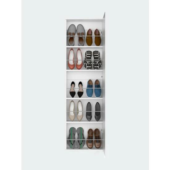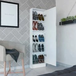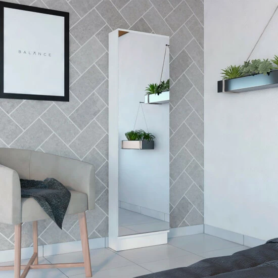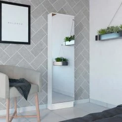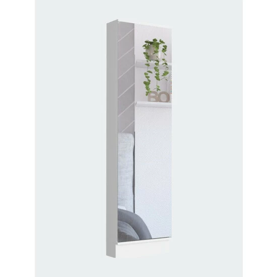 Ruan XL Shoe Rack; you can easily organize all of your shoes in one place! This rack has plenty of space to store ten or more pairs of shoes, making it perfect for any size collection. It’s also a great way to add some extra organization and style to any room in your home with a big mirror and five Interior shelves (12.5″ H x 10.7″ H x 12.7″ H x 10.7″ H x 12.5″ H x 17.2″ W). Order your Ruan XL Shoe Rack today! Designed with elegant black wengue and white manufactured wood finish.