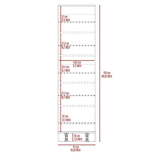 - Dimensions: 66.93″ H x 18.50″ W x 748″ D